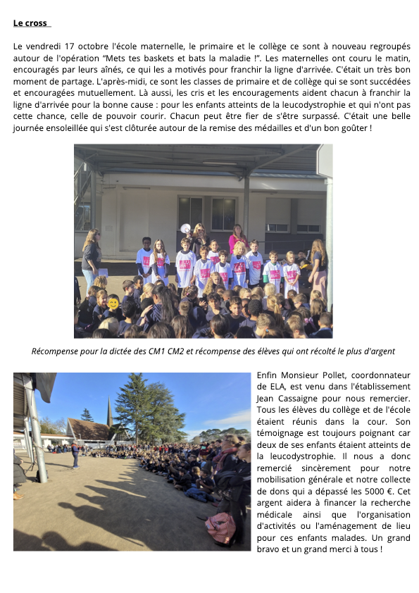 - ELA : « Mets tes baskets et bat la maladie »